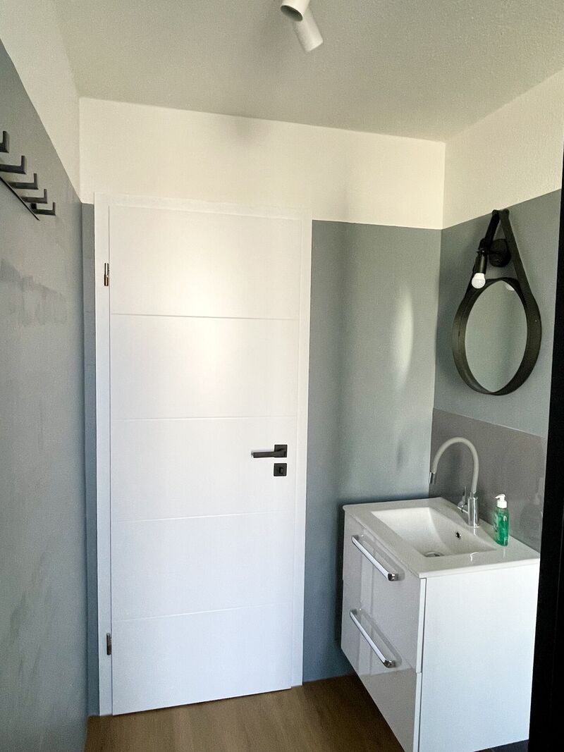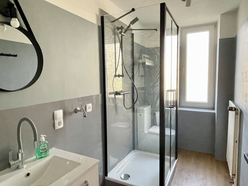 Im Duschbad (mit neuen sanitären Anlagen) ist ein Waschmaschinenanschluss vorhanden.