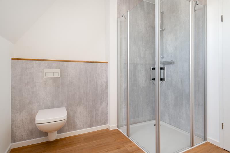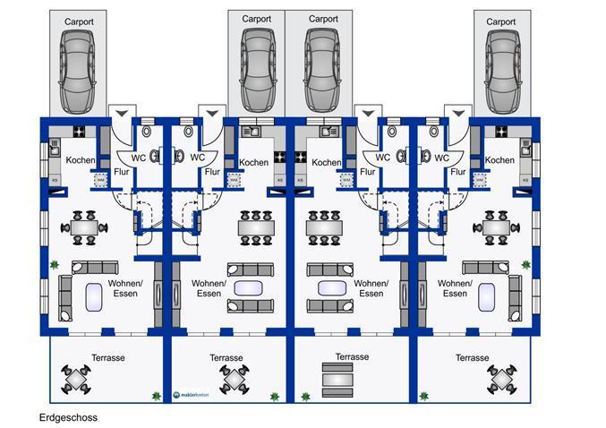 Im eingefriedeten Außenbereich steht Ihnen neben einer eigenen Gartenfläche zur Südseite hin weiterhin eine Terrasse mit Sichtschutzwand, ein PKW-Stellplatz (Carport) und ein eigener Abstellraum im gemeinschaftlichen, separaten Nebengebäude zur Verfügung. Die Einheiten werden schlüsselfertig (inkl. Maler- und Bodenbelagsarbeiten, exkl. Einbauküche) übergeben. Den gesamten Leistungsumfang entnehmen Sie der beigefügten Baubeschreibung.