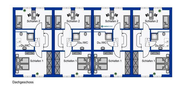 Das komplette Raumprogramm entnehmen Sie den beigefügten Grundriss-Skizzen. Jede Einheit erhält ein eigenes Grundbuch, eine eigene Luftwärmepumpe (reine Fußbodenheizung, kein Gas-Verbrauch!), Sat-Schüssel, Hausanschlüsse und eine Vorrichtung für die E-Mobilität. Weitere Wohnvorteile: Eine zentrale Be- und Entlüftungsanlage, 3-fach isolierverglaste Kunststofffenster (anthrazit) mit Jalousien (elektrisch), Vinyl-Design-Bodenbeläge und moderne Bäder mit fugenlosen Design-Duschpaneelen. Die Wohnanlage wird mit einem "Röben Wiesmoor NF Kohle-bunt" verblendet und die mittleren Einheiten mit hochwertigen, imprägnierten und witterungsbeständigem Holz verkleidet (Lärche, Doppel-Rhombusleisten). Das Dach wird mit schwarzen Dachpfannen eingedeckt.