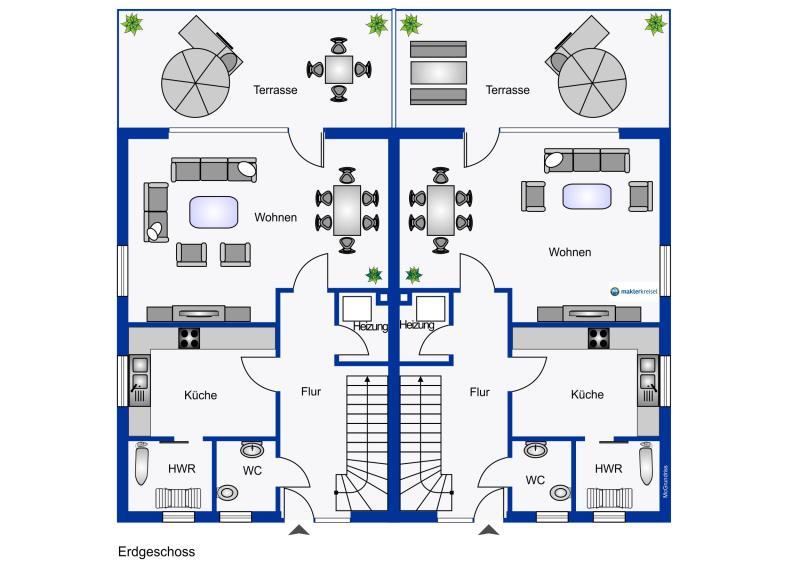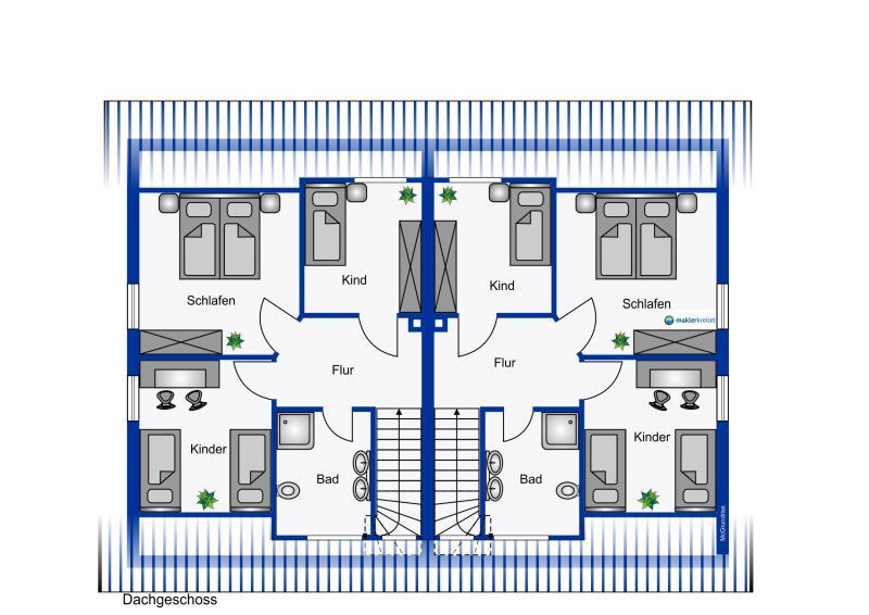 Das Doppelhaus befindet sich in einem gepflegten Zustand und wird komplett möbliert inkl. Einbauküchen und Inventar übergeben.