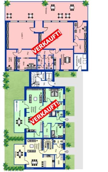 Die Bestandsimmobilie besteht aus einer Gewerbeeinheit ("ruhiges" Gewerbe vertraglich garantiert) im Erdgeschoss und drei weiteren, modernen Wohneinheiten im Ober- und Dachgeschoss, alle samt saniert, mit Terrasse bzw. Loggia und durch einen Aufzug barrierefrei erschlossen. Diese Einheiten sind bereits veräußert.
