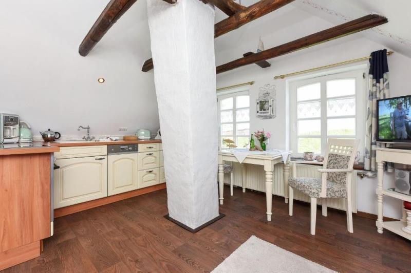 Die Holzfenster sind 2-fach isolierverglast, beheizt wird die Immobilie über eine Gas-Brennwerttherme. Das stilgerechte Mobiliar / Inventar ist im Kaufpreis enthalten.