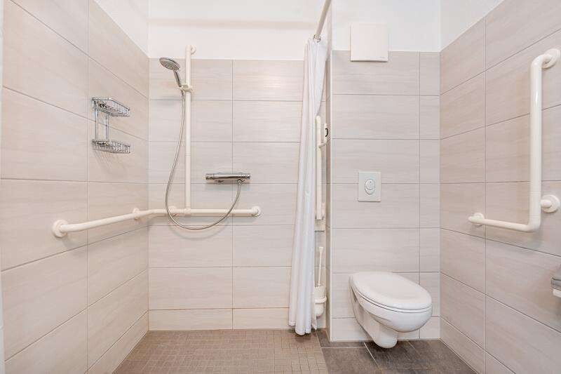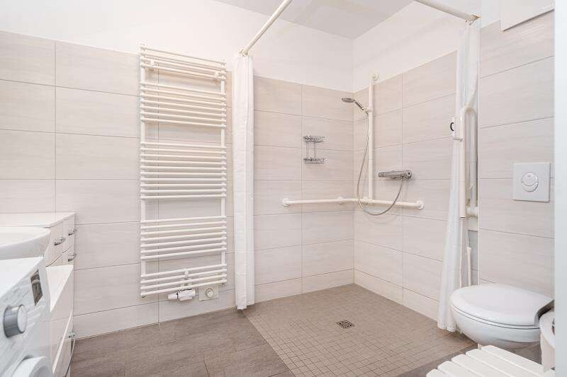 Ein barrierefreies Badezimmer mit ebenerdiger Dusche sowie praktische Abstellmöglichkeiten innerhalb der Wohnung und im Keller ergänzen das Angebot. Die Wohnung ist bequem per Aufzug erreichbar und verfügt über Ausstattungsdetails wie elektrische Rollläden, dreifach verglaste Fenster, Gegensprechanlage sowie die Vorrichtung für einen Hausnotruf. Ein zugeordneter Parkplatz ist vorhanden.